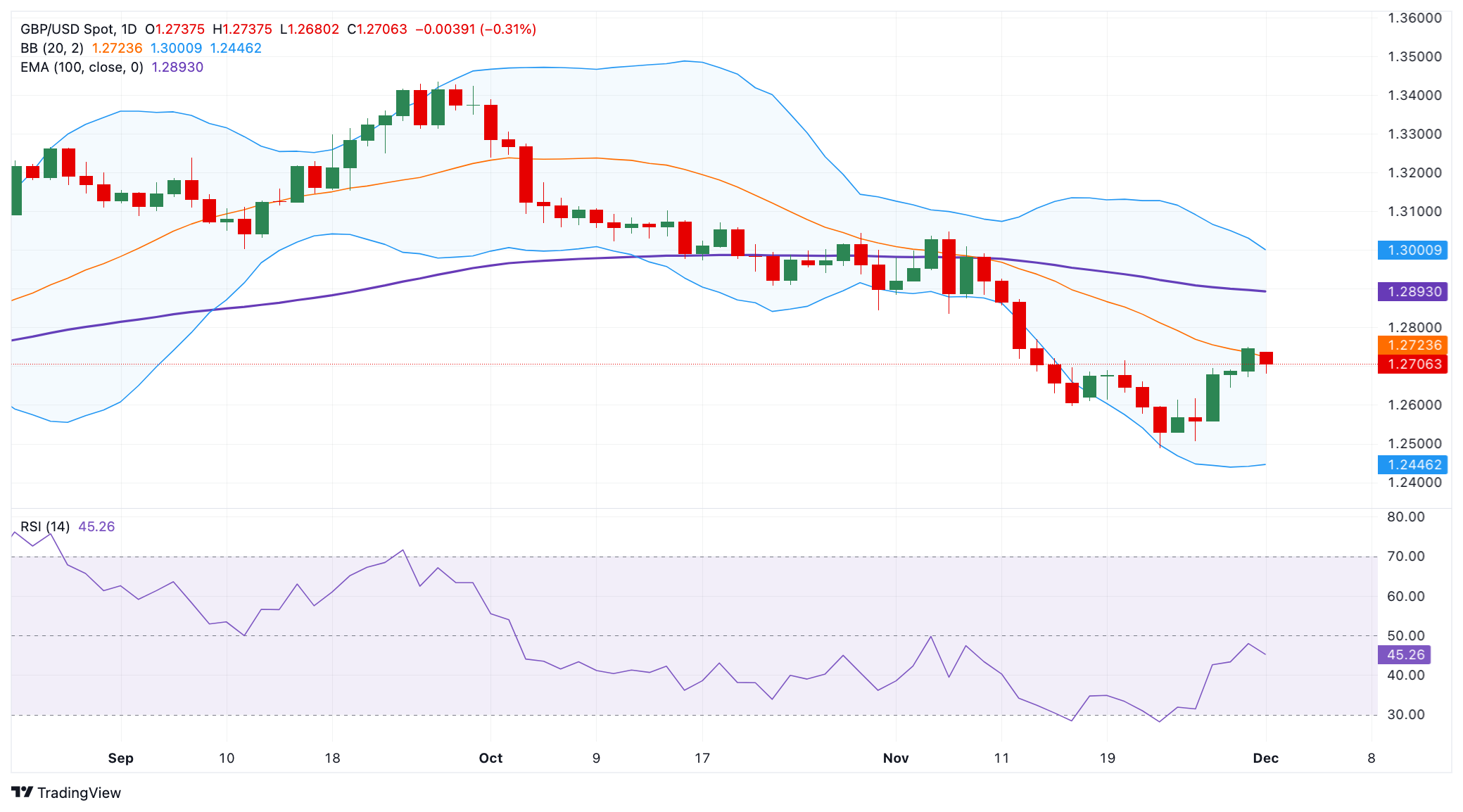 英鎊/美元負(fù)面前景仍完好,只要其保持在 100日指數(shù)移動均線下方,相對強弱指數(shù)看跌。